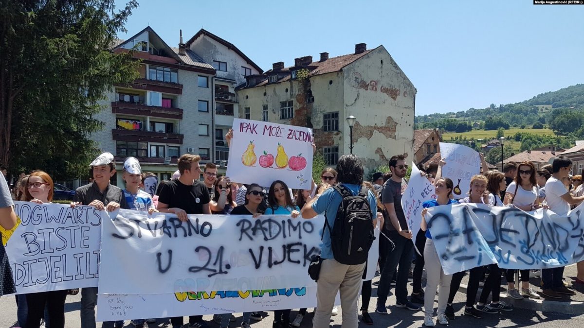 Izvršni direktor Udruženja Vaša prava BiH Emir Prcanović je za RSE istakao kako pravna borba za ukidanje segregacije u školama, poznatija pod nazivom “dvije škole pod istim krovom”, traje već 12 godina u dva kantona u FBiH, Srednjobosanskom i Hercegovačko-neretvanskom kantonu. Prcanović je podsjetio i da je Vrhovni sud Federacije BiH, nakon sporova u opštinskom i Kantonalnom sudu, 2014. godine donio presudu da fenomen “dvije škole pod jednim krovom” u HNK predstavlja etničku segregaciju učenika i da takva praksa mora biti ukinuta, te da je i Ustavni sud BiH 2017. godine odbio reviziju te presude. Ipak, ni nakon pet i po godina, u HNK nije u potpunosti sprovedena ta presuda.