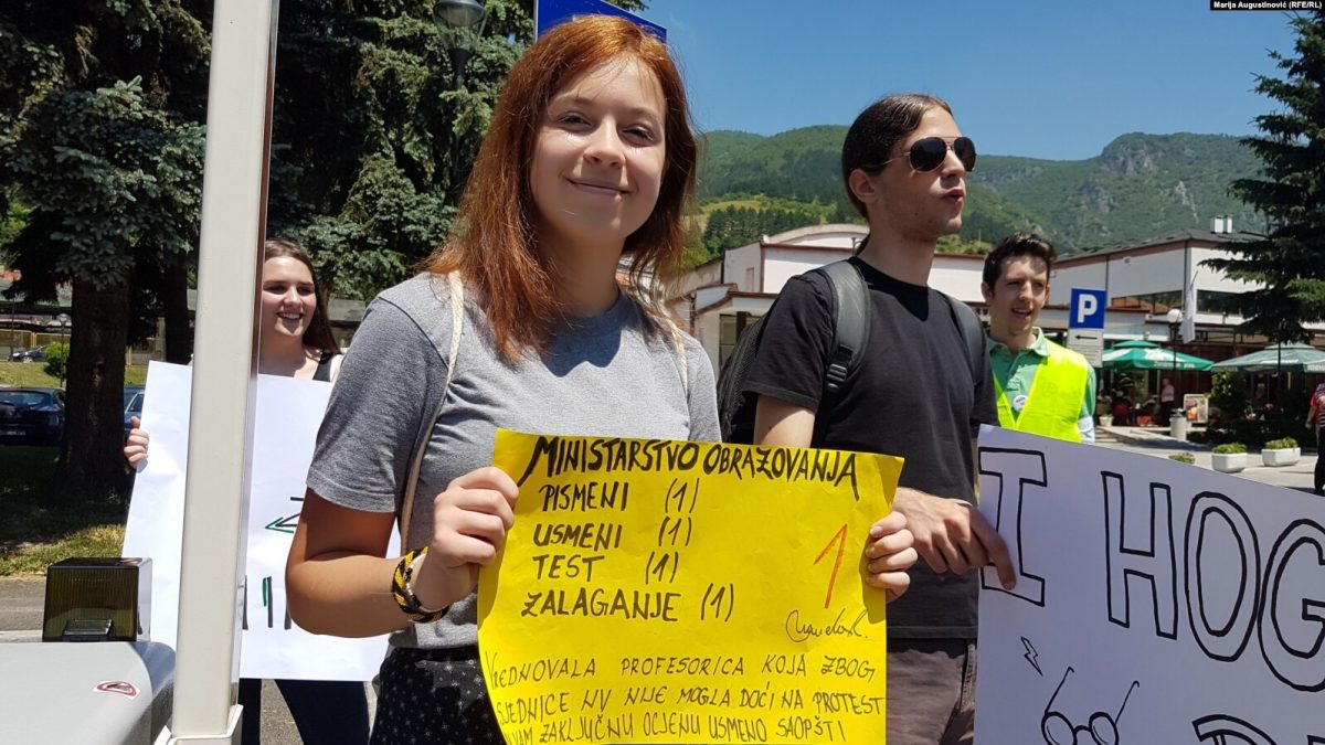 Protesti srednjoškolaca ispred zgrade kantonalne Vlade u Travniku, juni 2017. godine