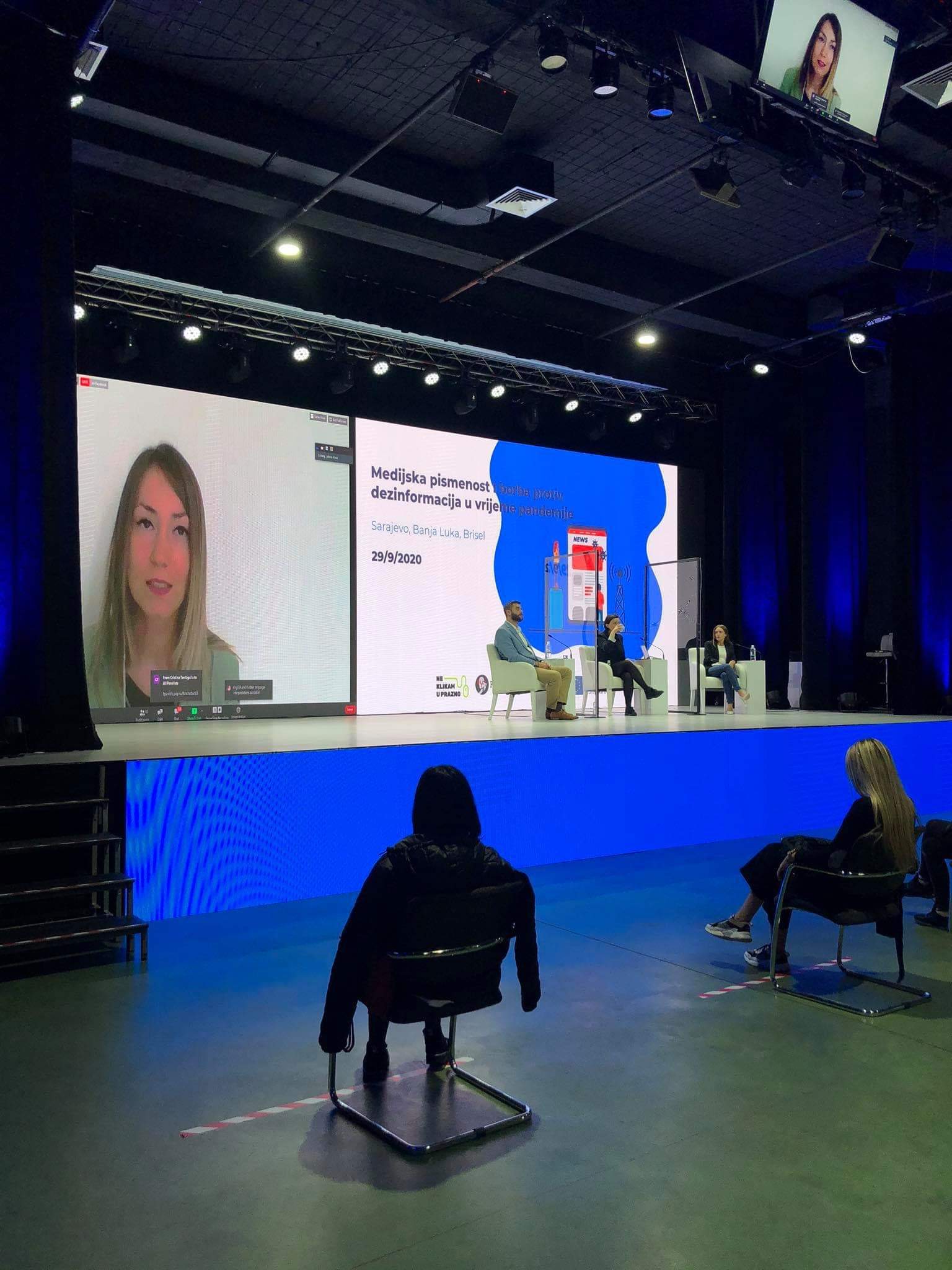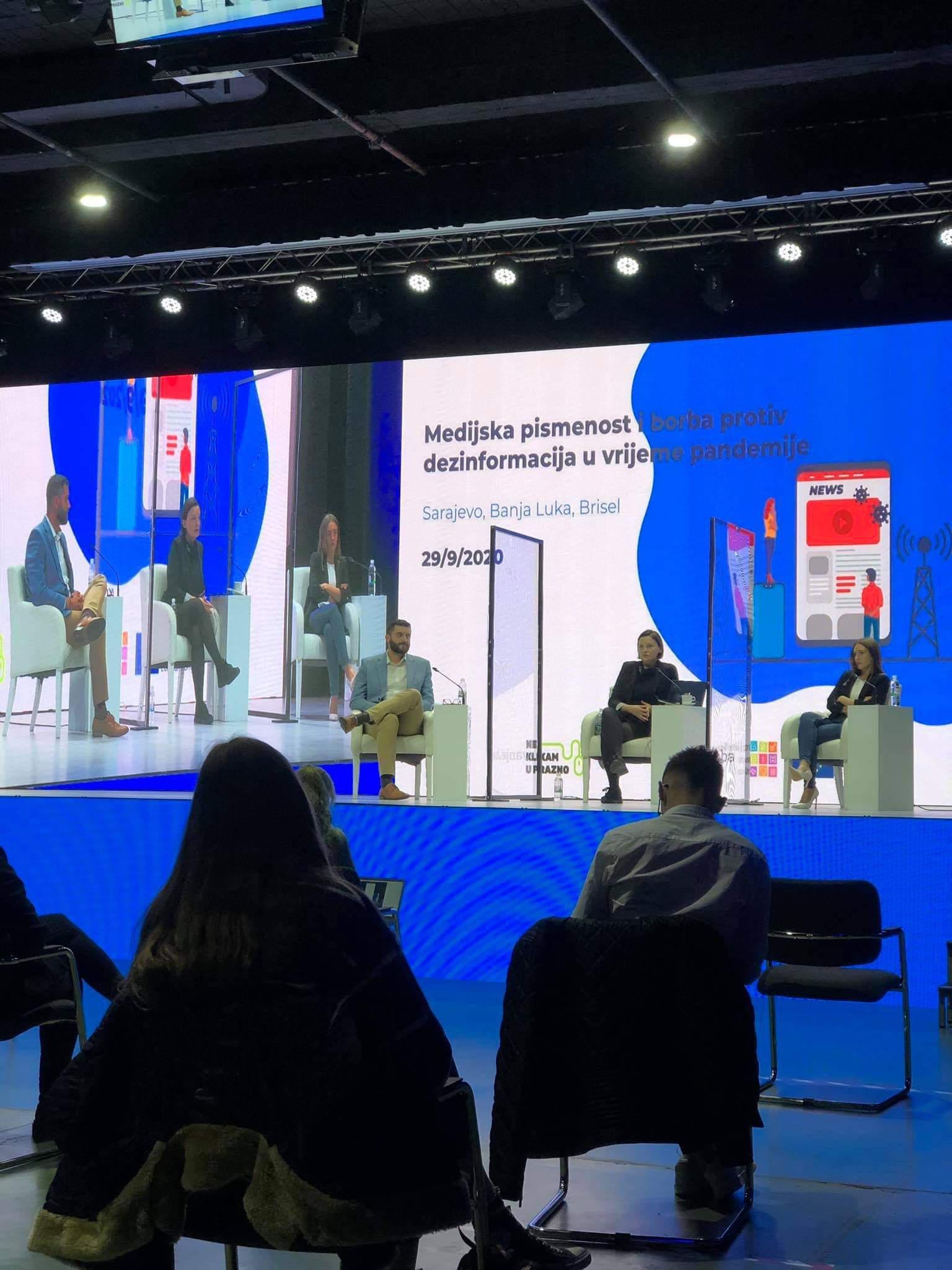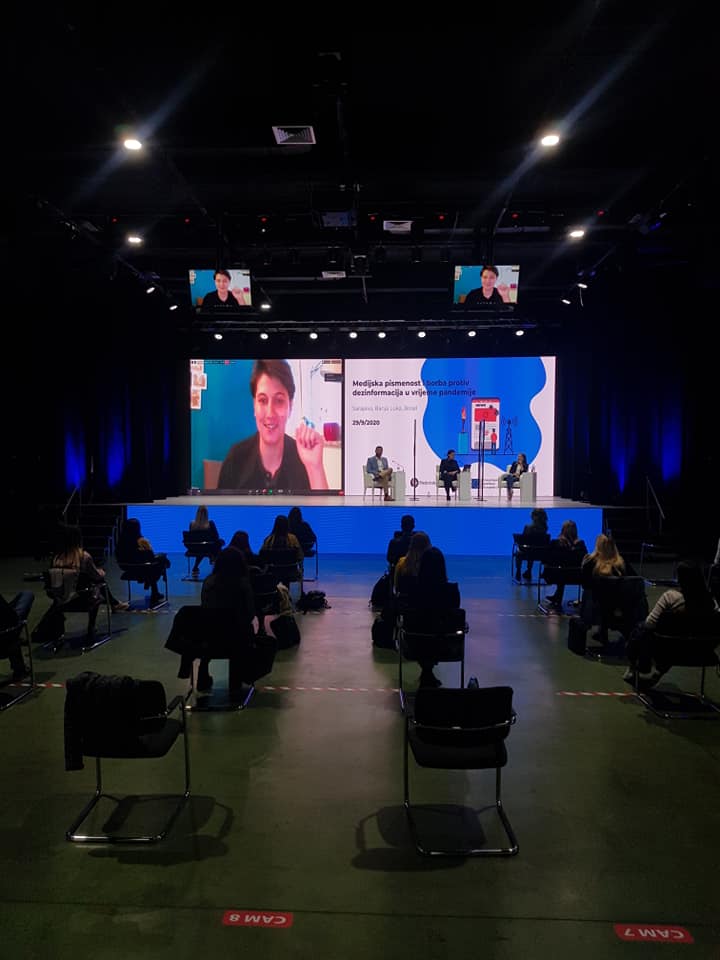 Panel održan u Sarajevu moderirala je Tijana Cvjetićanin, iz organizacije “Zašto ne”. Na panelu su učešće uzeli gosti u sarajevskom studiju – naučna novinarka Jelena Kalinić i ekspert za telekomunikacije Aleksandar Mastilović. Video linkom su se priključili Cristina Tardguila iz međunarodne mreže fact-checking organizacija IFCN; Jelena Vlasić, novinarka Raskrikavanja (Srbija), Ana Brakus, novinarka Faktografa (Hrvatska) i Milka Smilevska, novinarka mreže Al Jazeera Balkans.