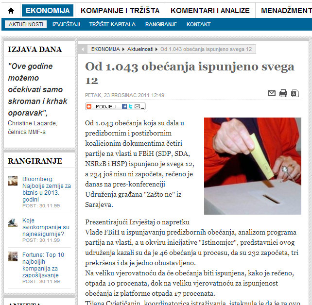 indikator.ba-istinomjer- of 1043, only 12 fulfilled promises