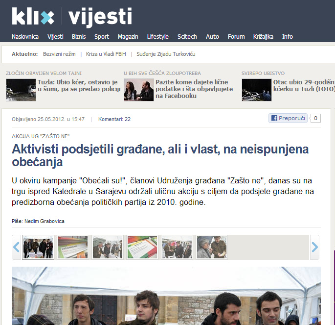 Klix.ba – Activists reminded citizens, and the government, about the unfulfilled promises