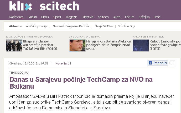 Klix.ba: Today in Sarajevo begins TechCamp for NGOs in the Balkans