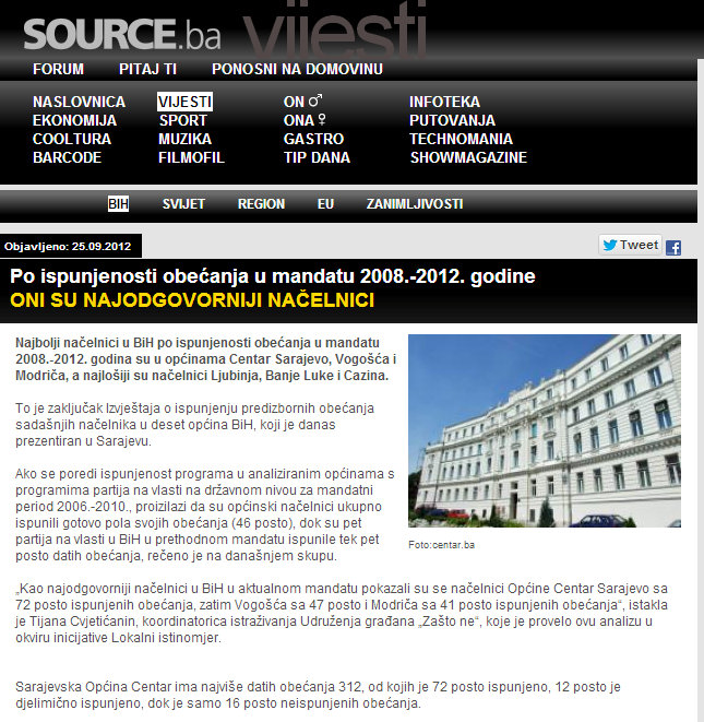 Source.ba: Upon fulfillment of the promises in the mandate of 2008th-2012th year they are the most responsible CHIEFS