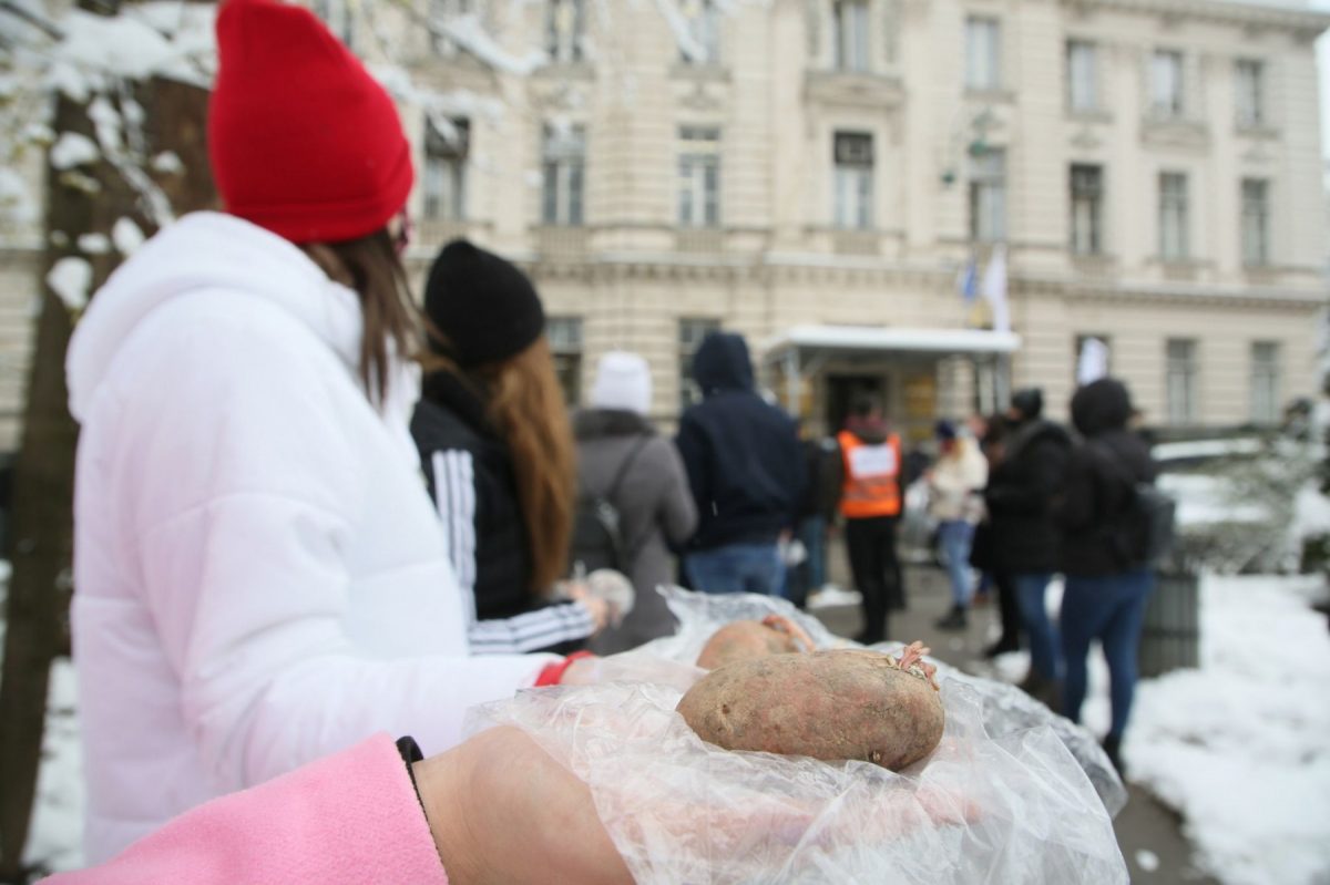 Protest studenata 7. 4. 2021. godine ispred zgrade Vlade KS-a
