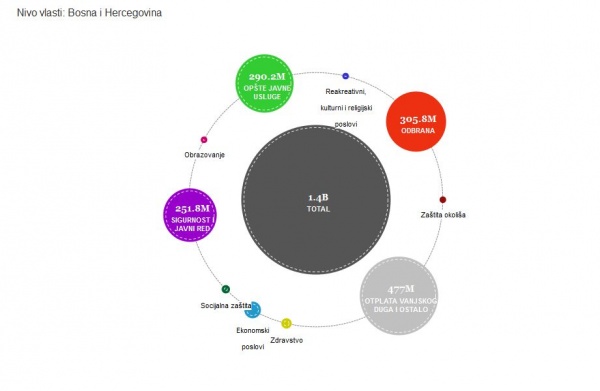 Ova stranica prikazuje potrošnju kroz budžete Bosne i Hercegovine, Republike Srpske, Federacije BiH, Distrikta Brčko i 10 kantona.