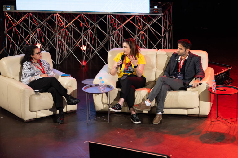 Na panelu “Fact-checking s prve linije” govorili su Riham Abu-Aita, suosnivačica palestinske platforme za provjeru činjenica Kashif, i Ahmad Primo, sirijski novinar i osnivač platforme Verify-sy. Oni su podijelili kako je raditi u sredinama pogođenim ratom. Govoreći o izazovima rada u Palestini, Riham je istakla da su dezinformacije sveprisutne. Uz nedostatak struje, interneta i pristupa izvorima, često im treba i do sedam dana da potvrde jednu informaciju. Poseban problem predstavlja strah — više od 1.300 novinara uhapšeno je od početka posljednjeg sukoba, što potiče na autocenzuru. Ahmad je govorio o svakodnevnim pritiscima u Siriji, gdje vlasti, opozicija i ekstremističke grupe pokušavaju monopolizirati narativ.