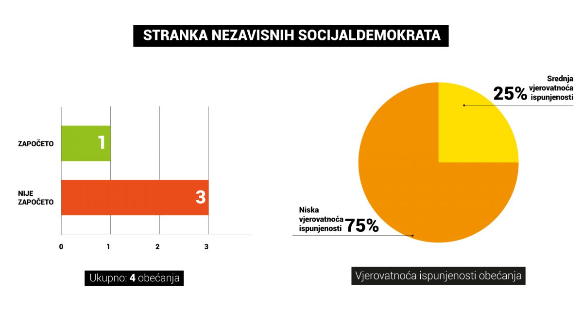 Važno je napomenuti da SNSD nije imao program za Opće izbore 2018. godine te je njihova obećanja Istinomjer prikupio tokom izborne kampanje iz javnih istupa zvaničnika ove stranke. Inače četiri obećanja ove partije odnose se na odbijanje daljeg napretka ka članstvu u NATO savezu, ukidanje ureda Visokog predstavnika u BiH kao i odlazak stranih sudija iz Ustavnog suda BiH.